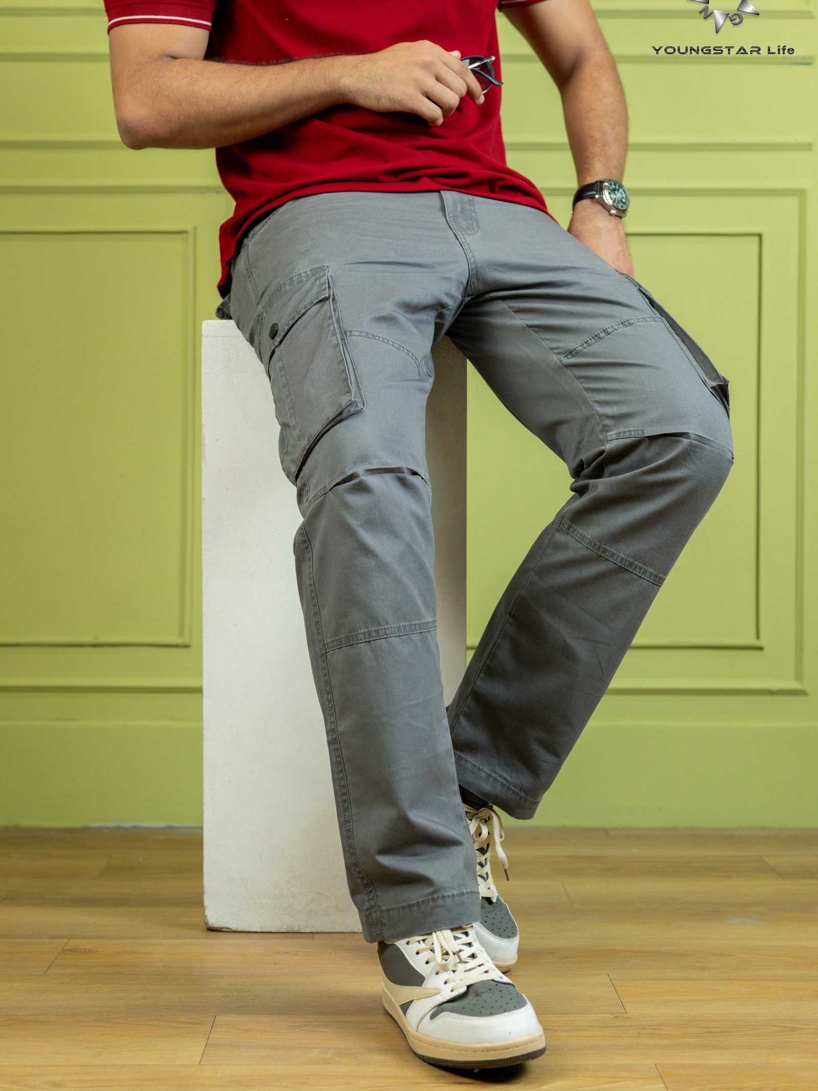 Ash Deep + Golden 6 Pocket Baggy Cargo Pant Combo - 100% Cotton