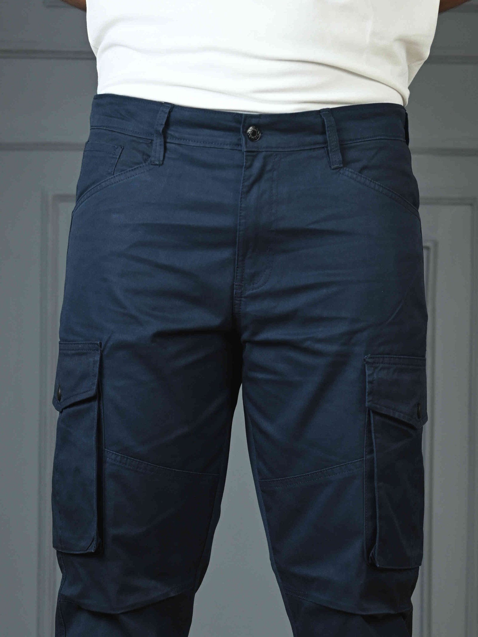 Ash Light + Navy Blue 6 Pocket Baggy Cargo Pant Combo - 100% Cotton