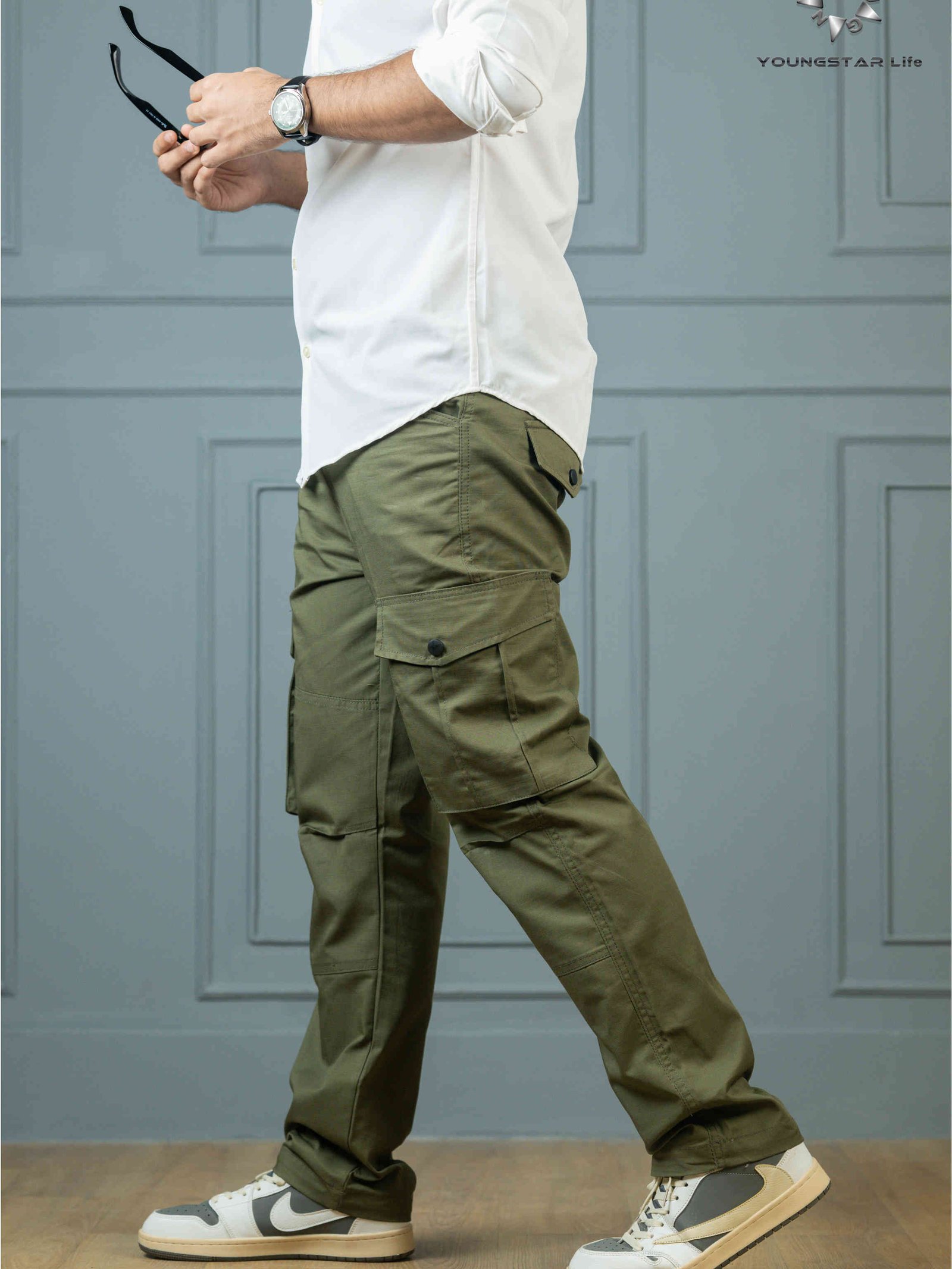 Olive 6 Pocket Baggy Cargo Pant - 100% Cotton