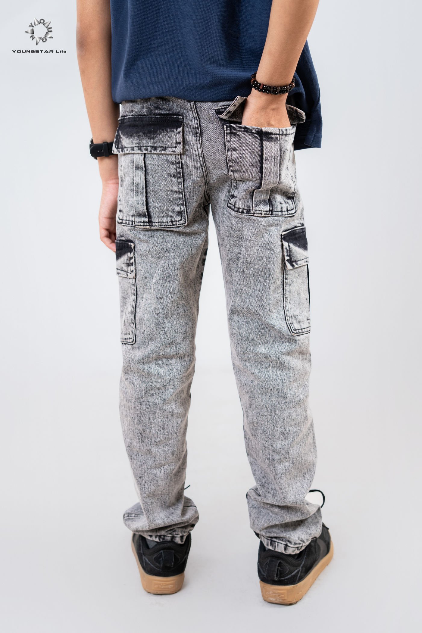 Deep Ash + Black 6 Pocket Kids Denim Combo Pant